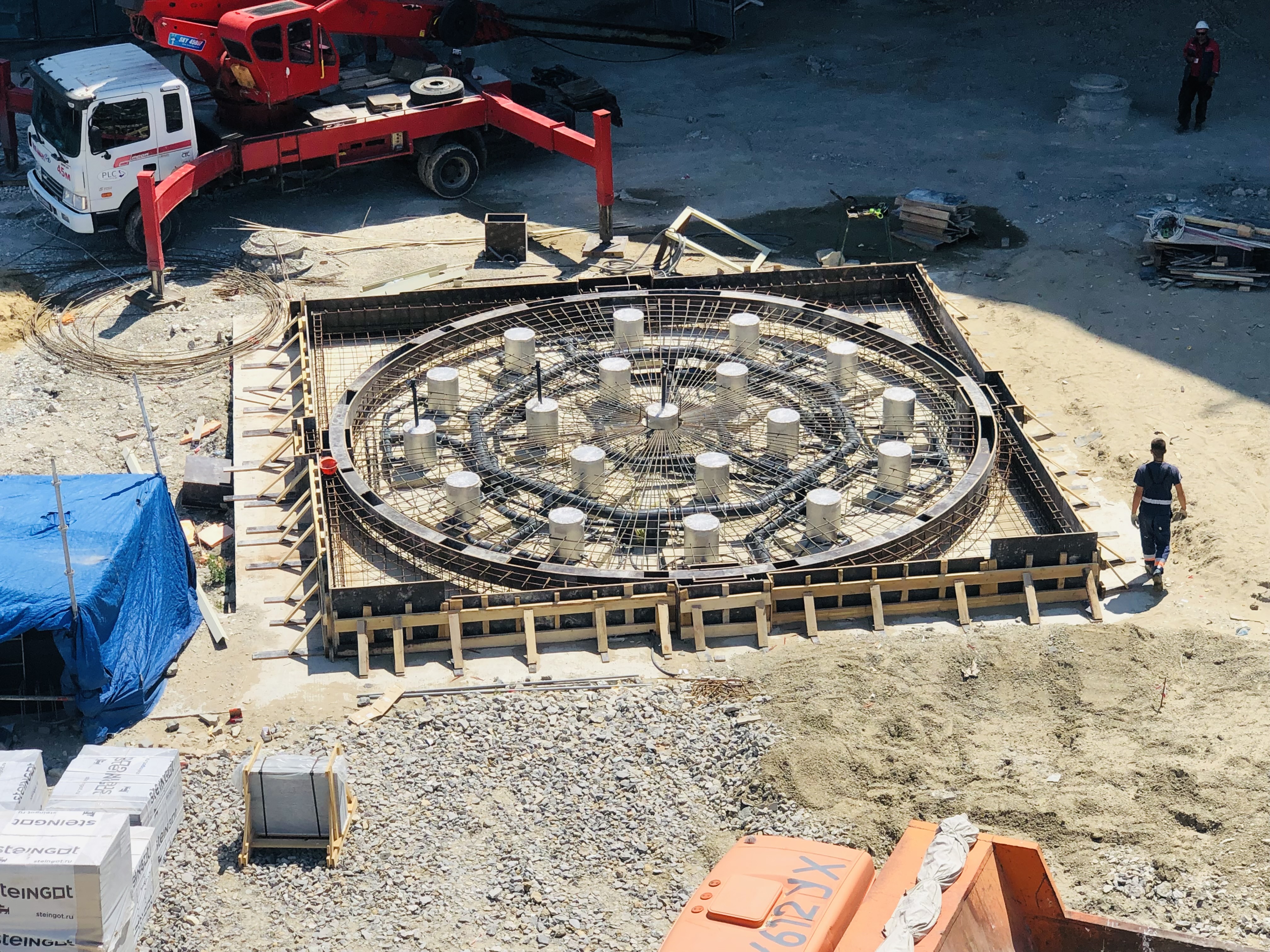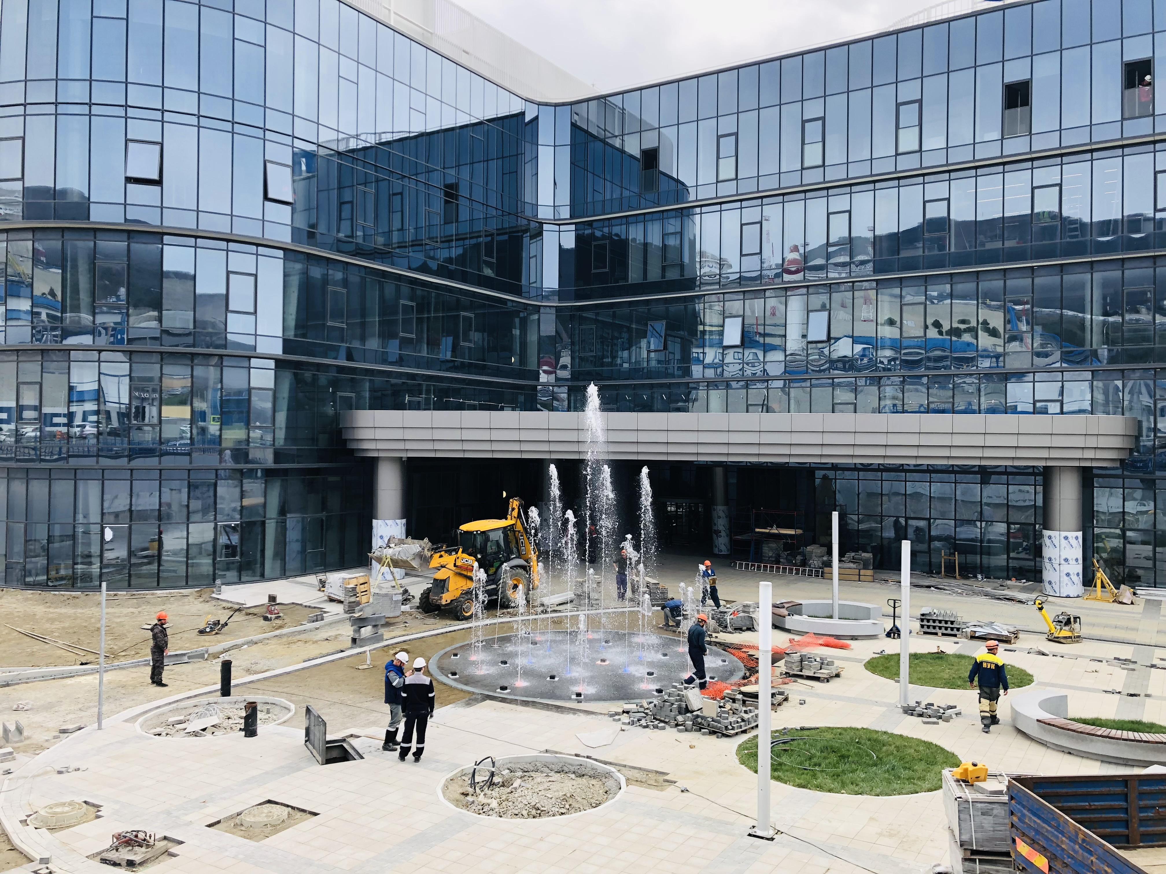 г.Новороссийск. ПК "Шесхарис". Здание аппарата Управления. Уличный и внутренний фонтаны.